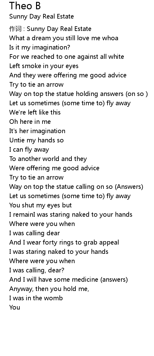 | 作词 : Sunny Day Real Estate | |