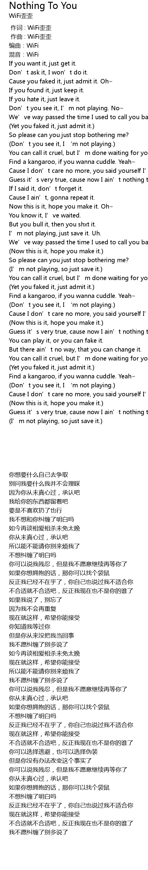 | [00:00.000] | 作词 : WiFi歪歪 |