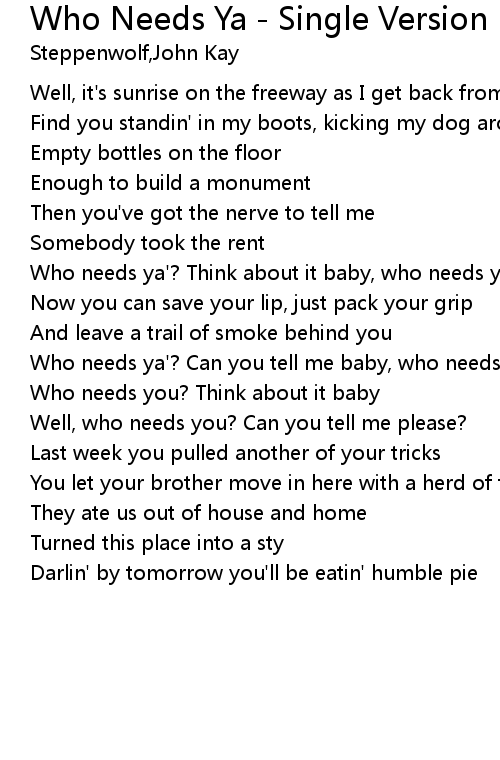 Who Needs Ya - Single Version 歌词