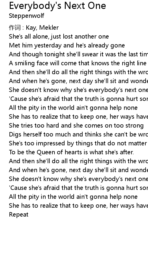 | She doesn' t know why she' s everybody' s next one | |