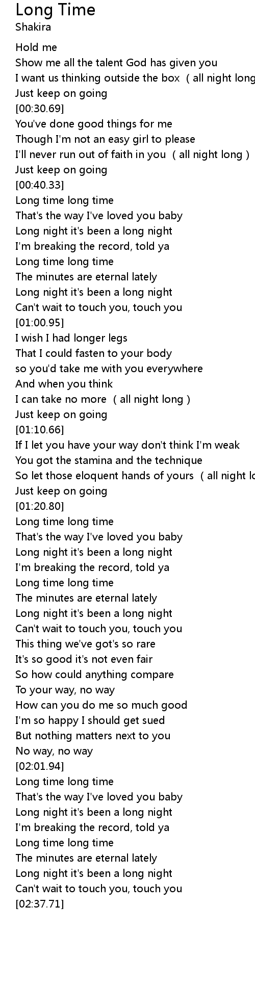 | [00:46.14] | Long night it' s been a long night |