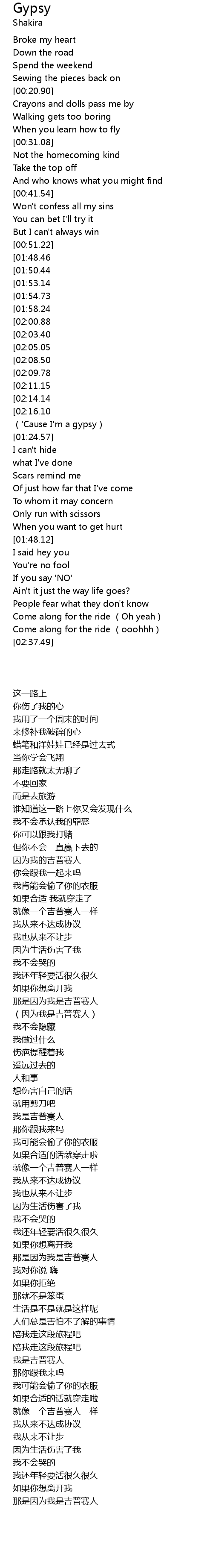 | [02:37.51][01:48.46][00:51.53] | 'Cause I'm a gypsy |