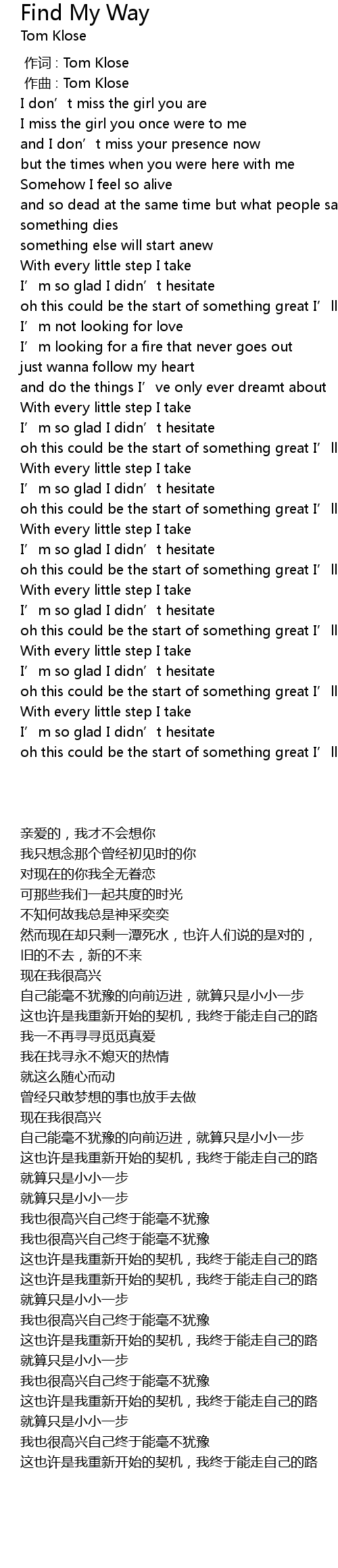 | [00:00.000] | 作词 : Tom Klose |