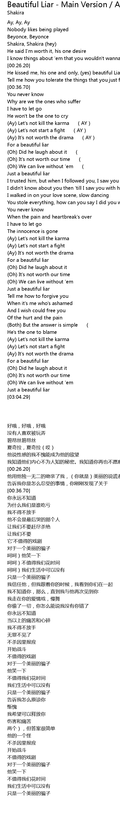 | 歌曲 | Beautiful Liar - Main Version / Album Version |