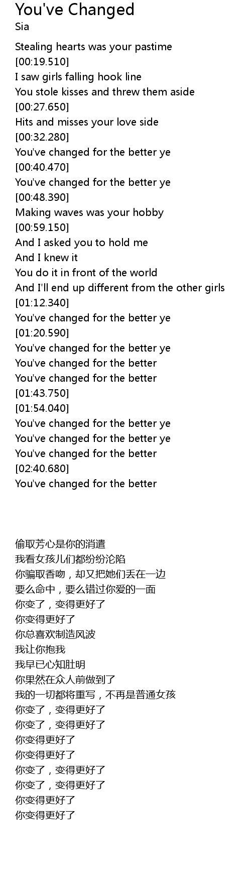 You've changed for the better |