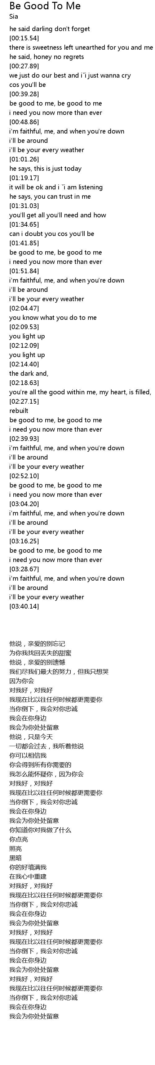| [03:19.44] | be good to me, be good to me |
