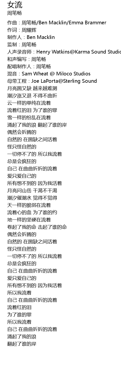 | [00:00.10] | 作曲:周笔畅/Ben Macklin/Emma Brammer |