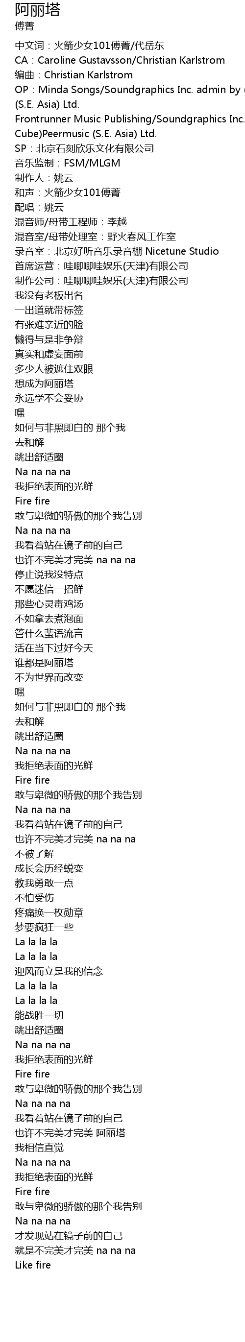 | [00:01.01] | 中文词:火箭少女101傅菁/代岳东 |
