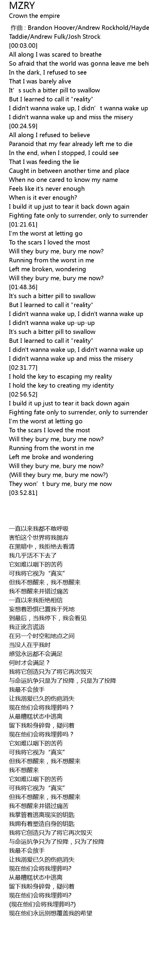 | [00:00.00] | 作曲 : Brandon Hoover/Andrew Rockhold/Hayden Tree/Brent Taddie/Andrew Fulk/Josh Strock |