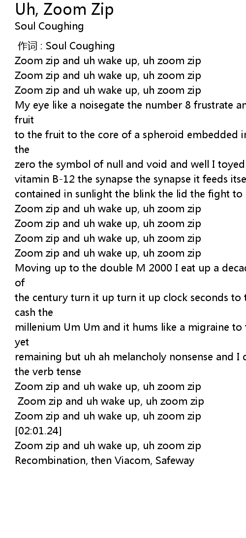 | [00:00.00] | Zoom zip and uh wake up, uh zoom zip |
