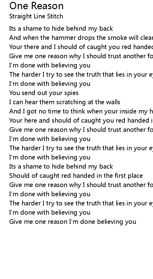 Give me one reason I'm done believing you |