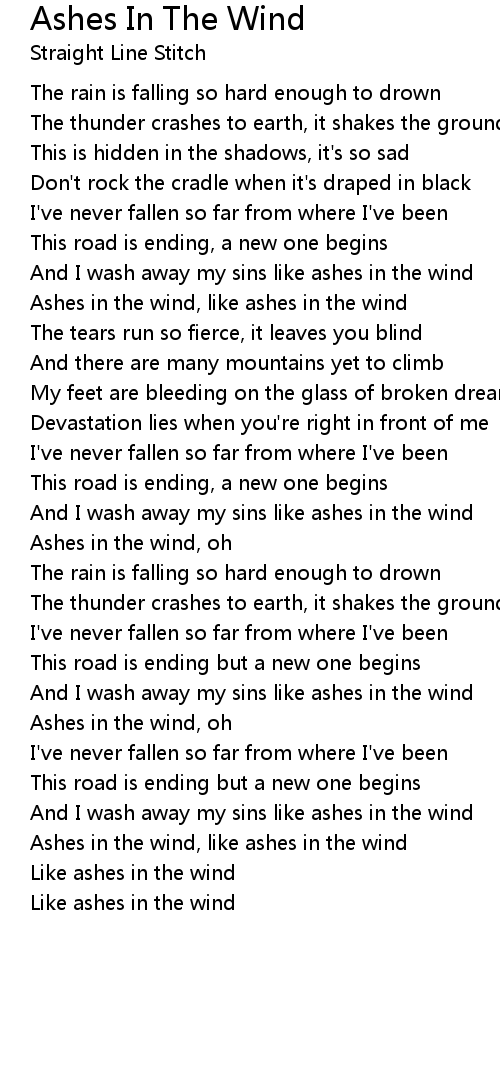 And I wash away my sins like ashes in the wind |