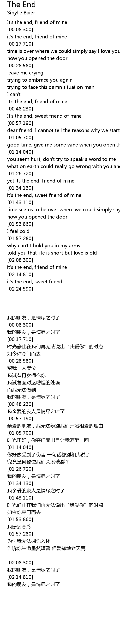 It's the end, sweet friend of mine |