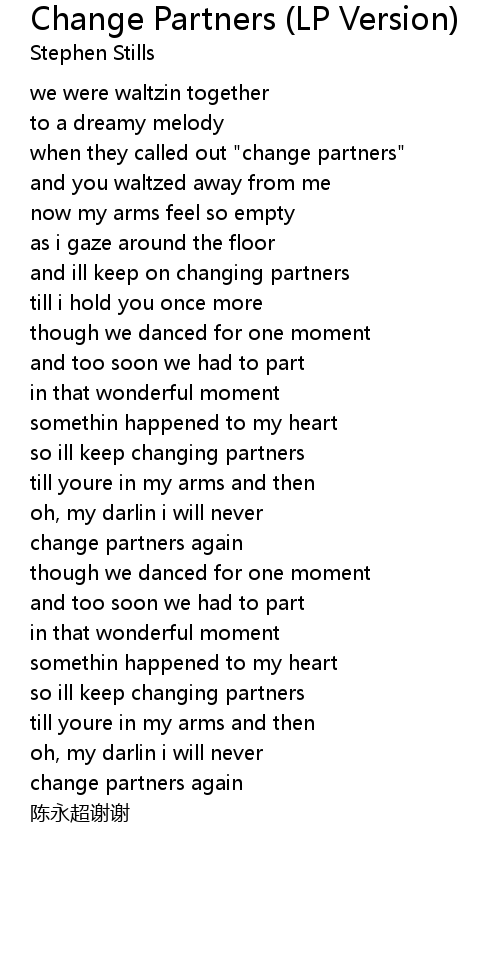 | 歌曲 | Change Partners (LP Version) |