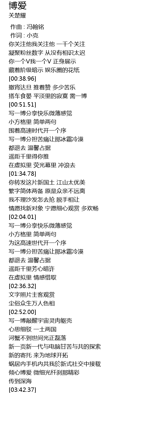 | [00:51.98] | 写一博分享快乐微薄感觉 |