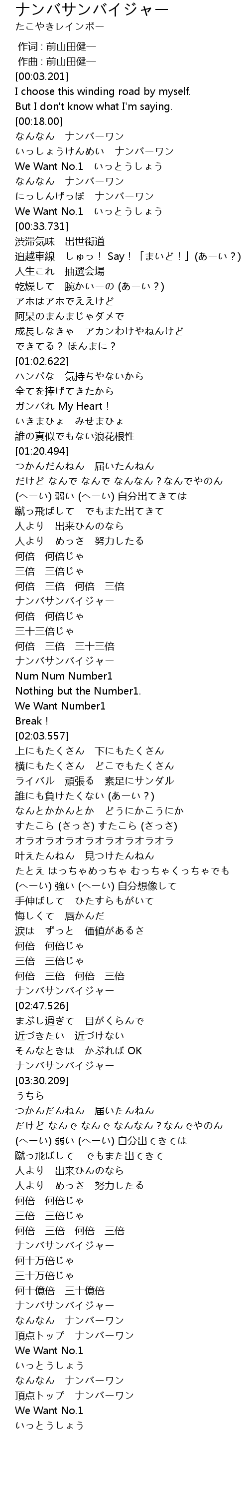 | [00:37.246] | 追越車線 しゅっ! Say!「まいど!」(あーい?) |