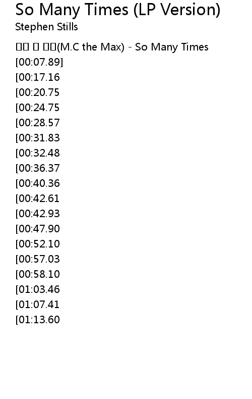 | [00:01.12] | 엠씨 더 맥스(M.C the Max) - So Many Times |