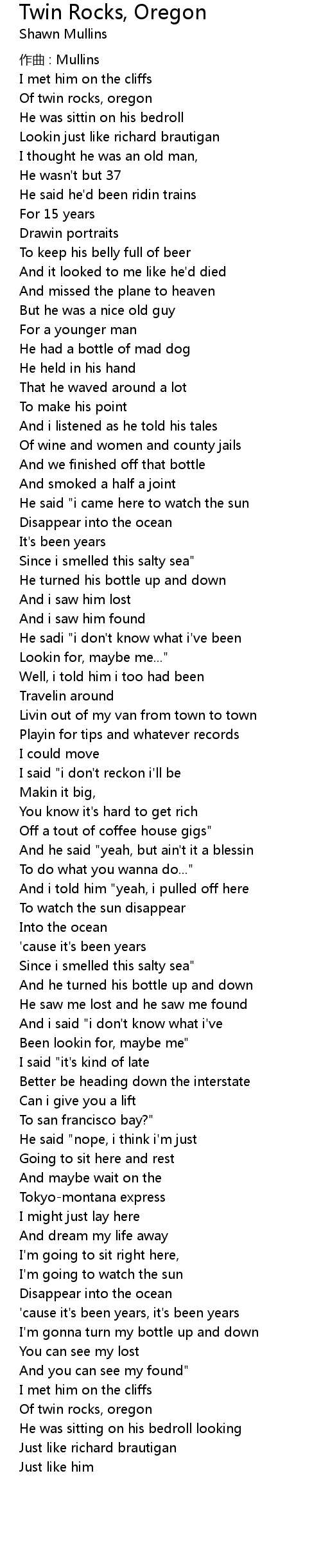 | 歌曲 | Twin Rocks, Oregon |