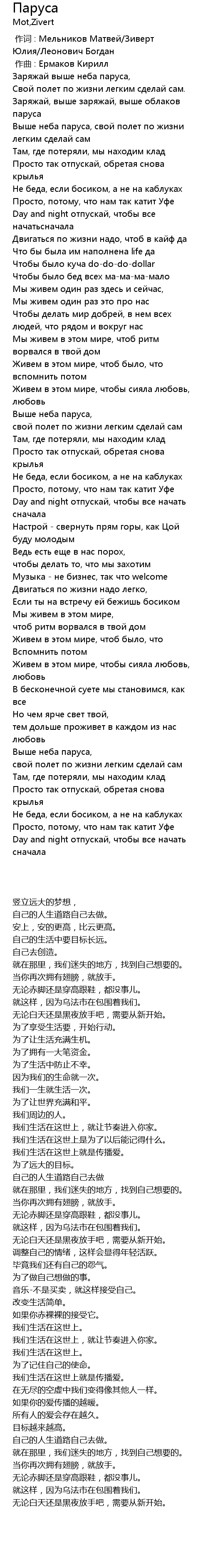 | [00:14.31] | Выше неба паруса, свой полет по жизни |
