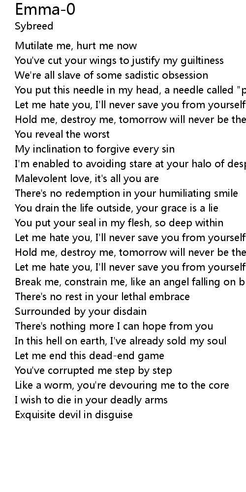 | Let me hate you, I'll never save you from yourself | |