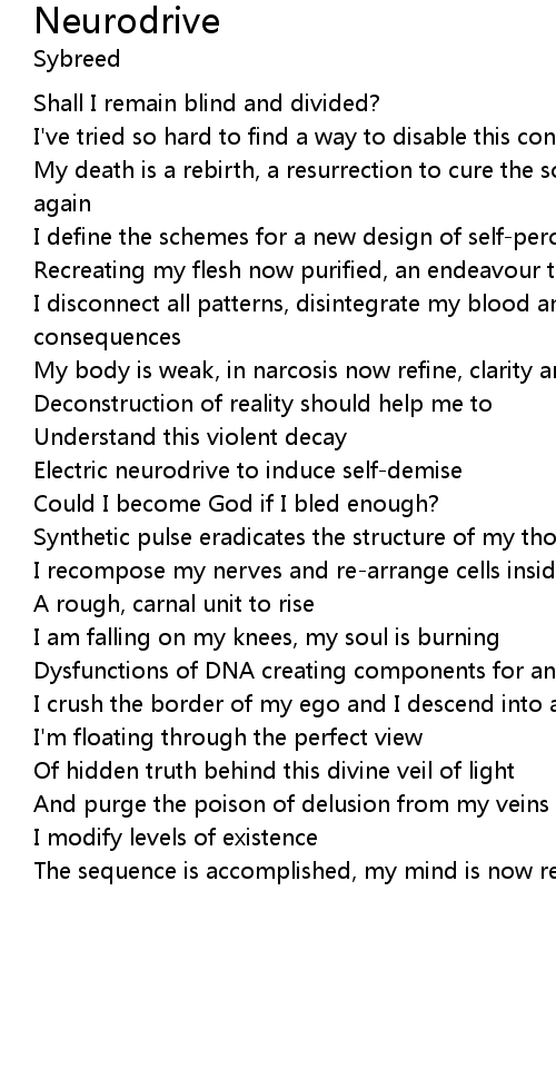 | My body is weak, in narcosis now refine, clarity and suffering thus collide | |