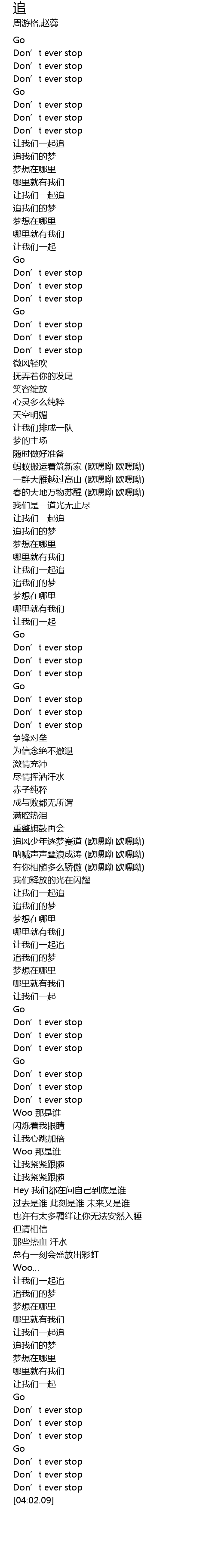 | [02:23.51] | 追我们的梦 |