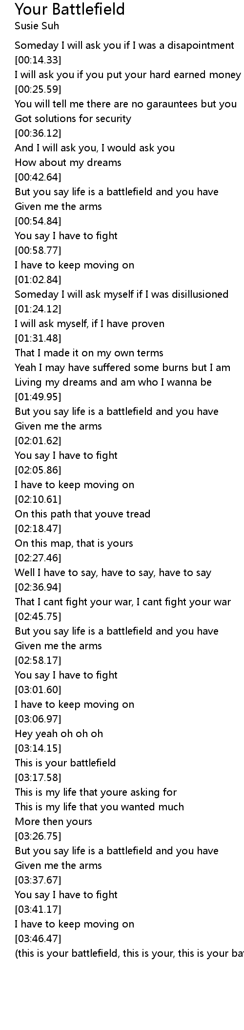 | [03:29.75] | But you say life is a battlefield and you have |
