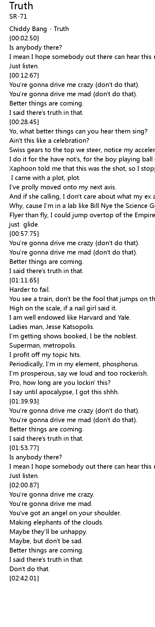 | [01:02.27] | You're gonna drive me mad (don't do that). |