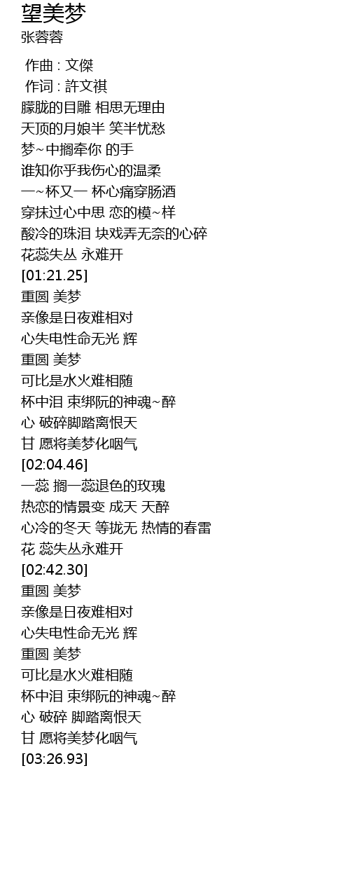 | [02:58.76] | 重圆 美梦 |
