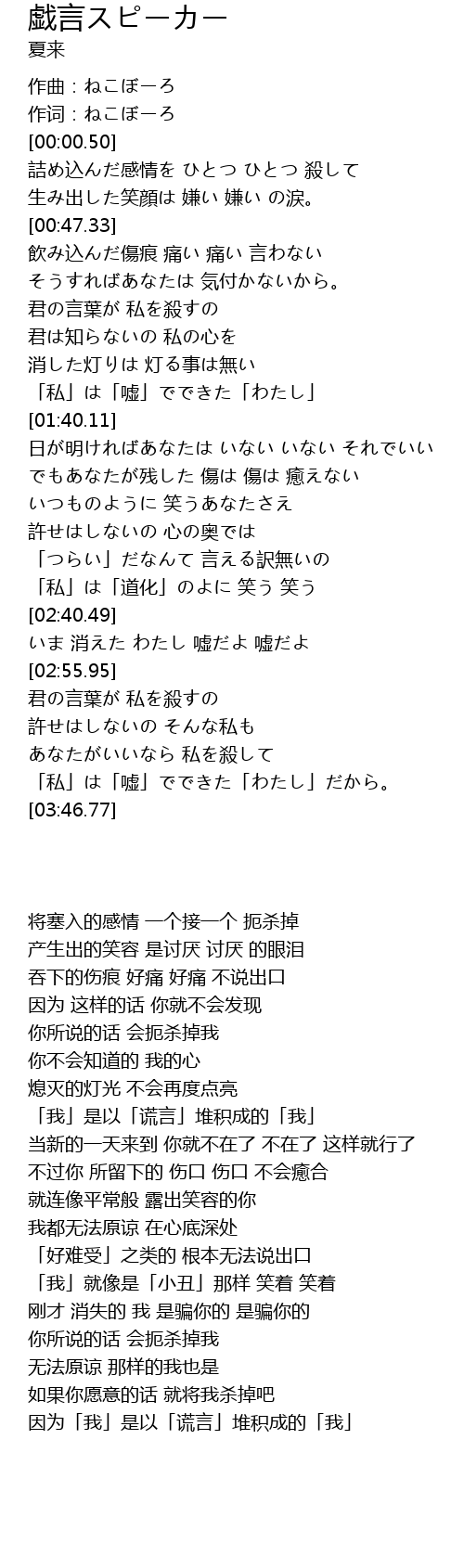 | [01:32.41] | 「我」是以「谎言」堆积成的「我」 |
