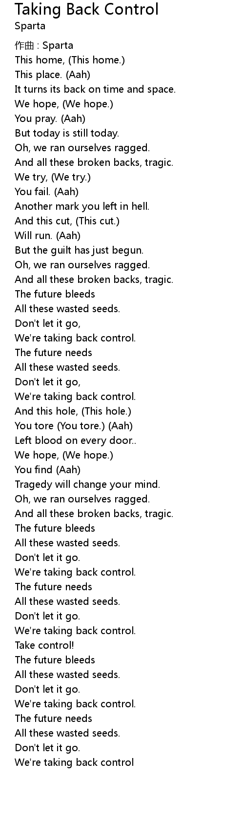 | We're taking back control. | |