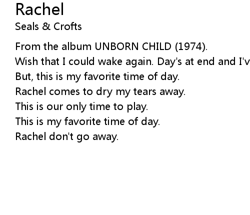 | Rachel comes to dry my tears away. | |