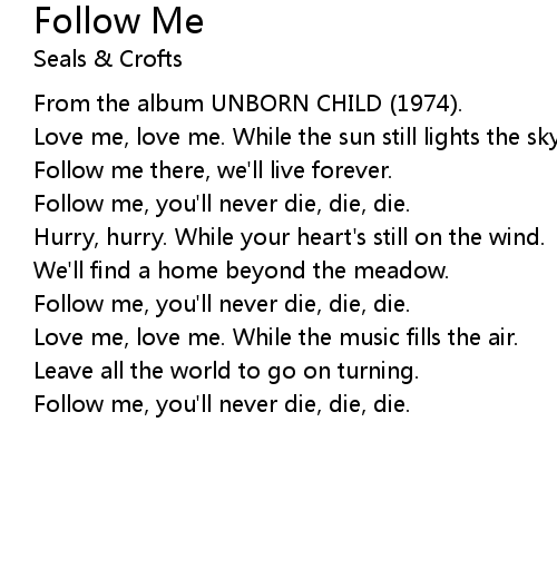 | Follow me, you'll never die, die, die. |