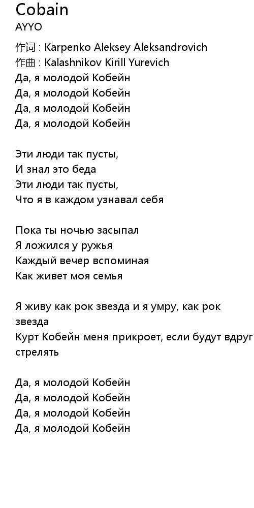 作词 : Karpenko Aleksey Aleksandrovich |