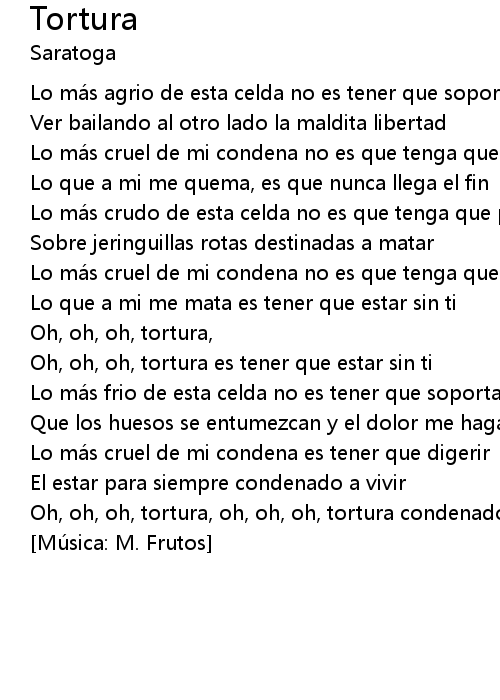| Oh, oh, oh, tortura, oh, oh, oh, tortura condenado a vivir Letra: T. Martí nez Mú sica: M. Frutos |