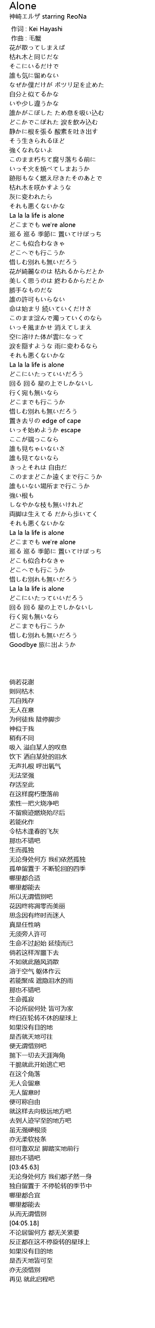 | [03:45.63] | La la la life is alone |