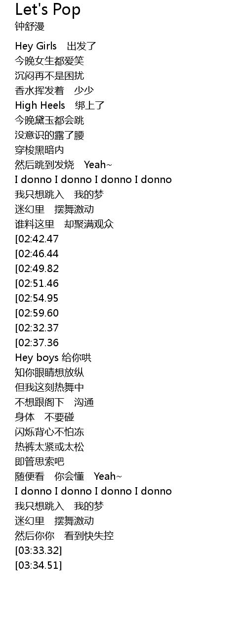 | [03:02.72][02:42.47][02:12.09][01:01.00] | Let' s Pop Never Stop hai wei gou zhong |