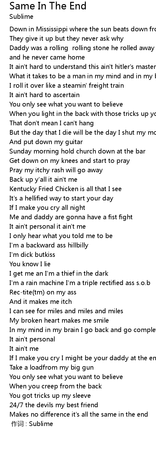| [01:07] | Kentucky Fried Chicken is all that I see |
