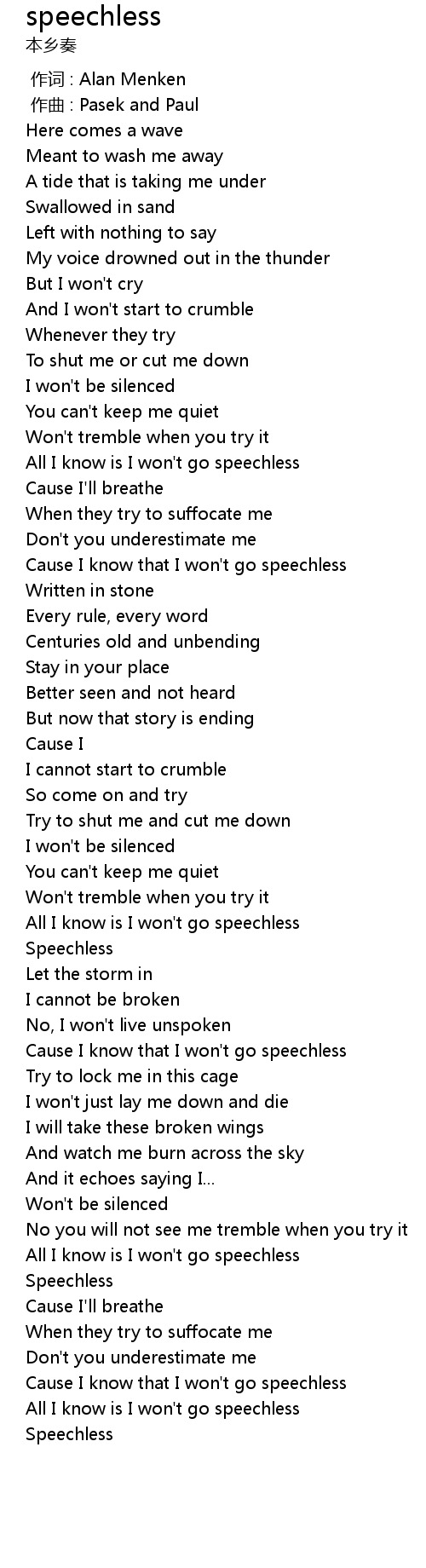 | [02:49.383] | Speechless |