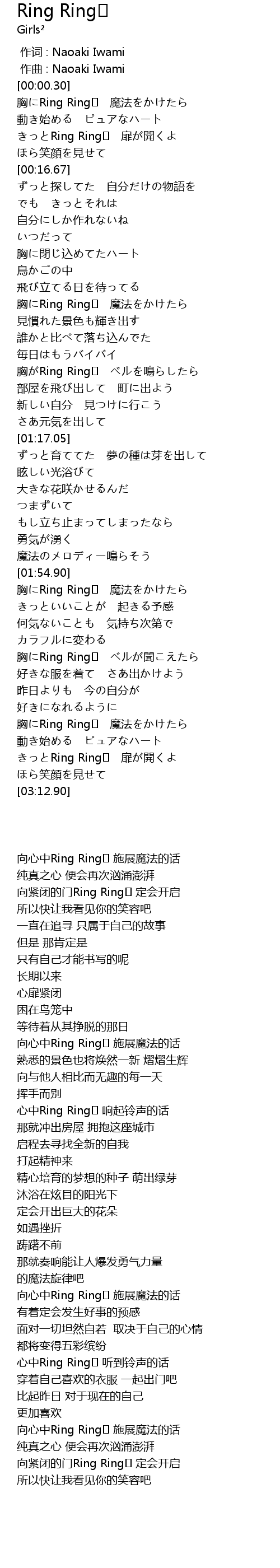 | [03:01.70] | きっとRing Ring♪ 扉が開くよ |