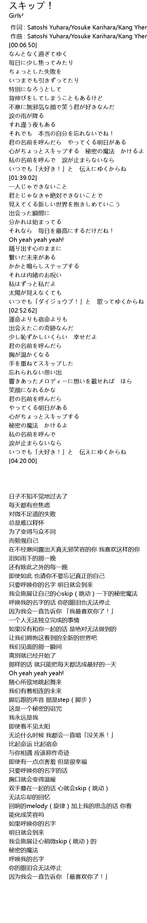 | [03:25.67] | 双手叠在一起的话 心就会skip(跳动) |