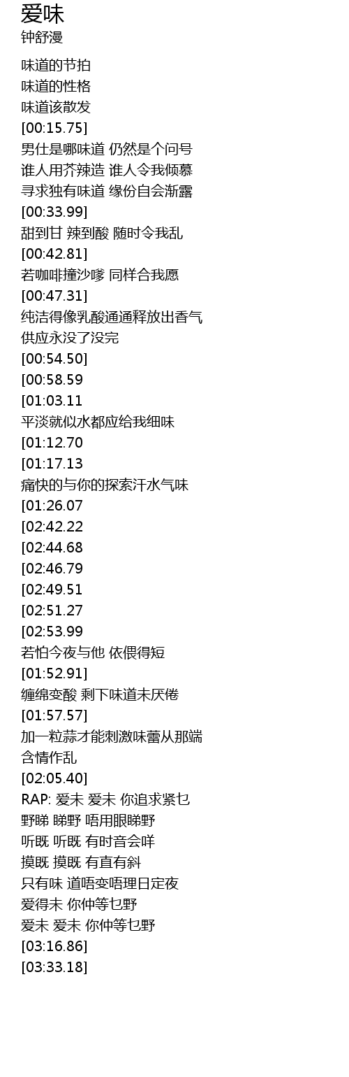 | [03:00.38] | RAP: 爱未 爱未 你追求紧乜 |