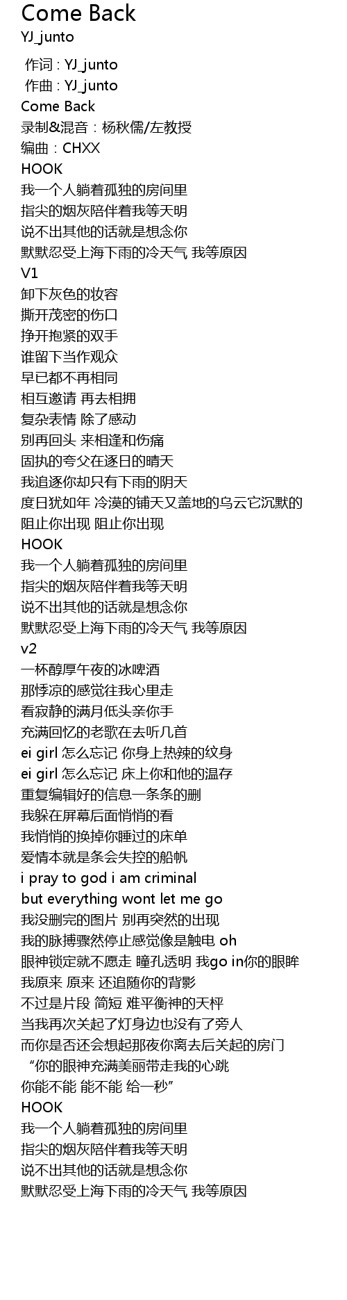 | [00:01.00] | zuo qu : YJ_junto |