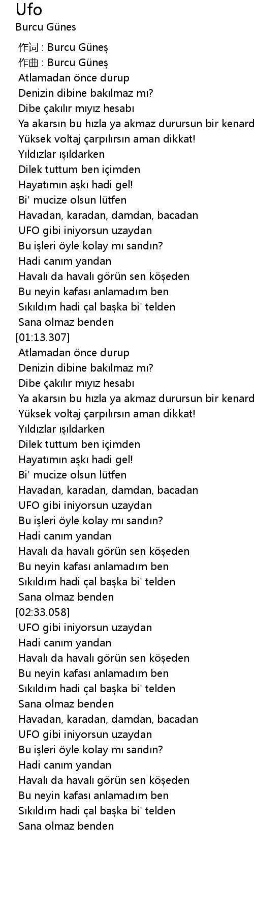 | [00:00.000] | 作词 : Burcu Güneş |