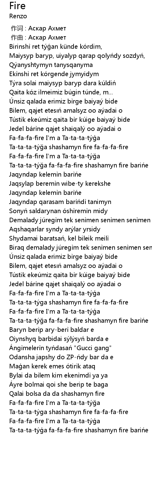 | [00:58.34] | Ta-ta-ta-týğa shashamyn fire fa-fa-fa-fire |