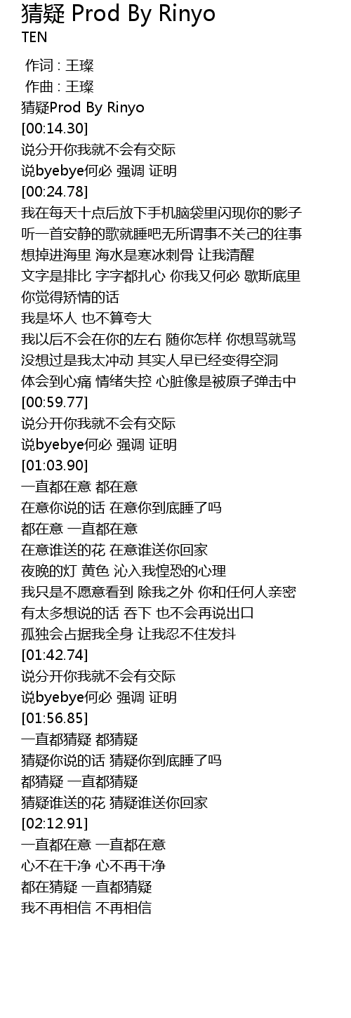 | [00:05.70] | 猜疑Prod By Rinyo |