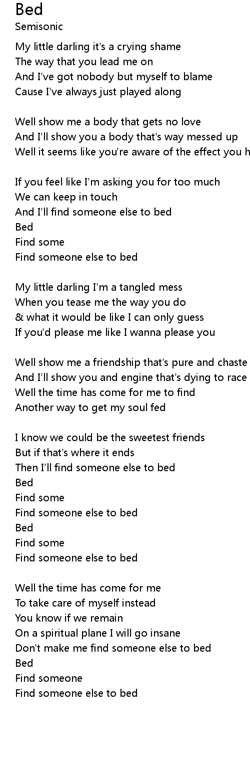 And I'll find someone else to bed |