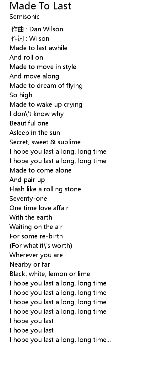 | [04:05.50] | I hope you last a long, long time |