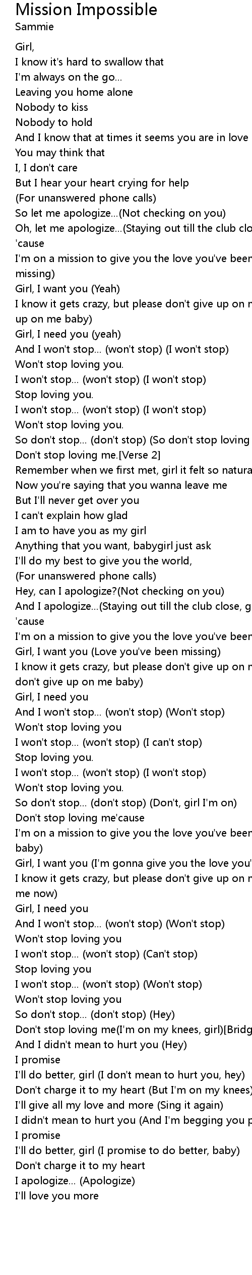 | I'm on a mission to give you the love you've been missing (I'm on a mission baby) | |