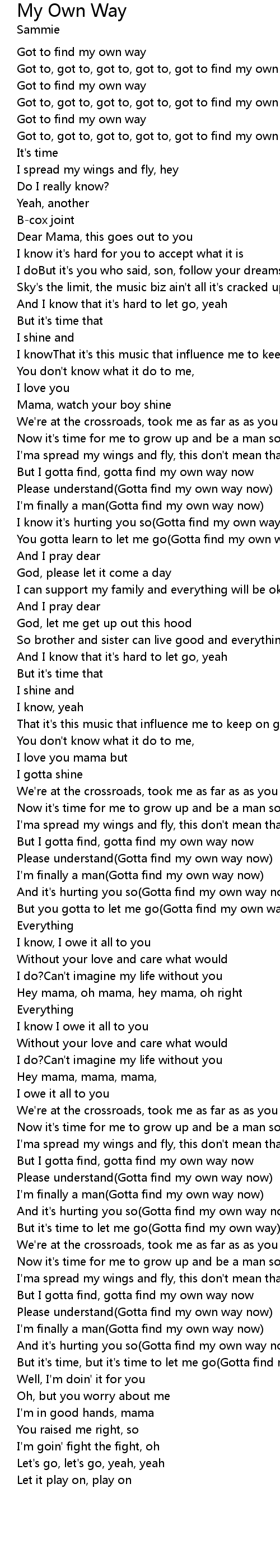 | But it's time, but it's time to let me go(Gotta find my own way) | |